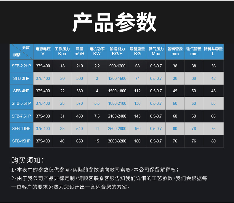 五:真空上料機規(guī)格選型表(部分)