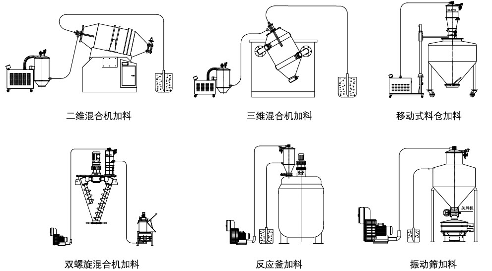 三:真空上料機與反應(yīng)釜、注塑機、擠出機、球磨機、包裝機、粉碎機、混合機、料倉等一系列設(shè)備配套。